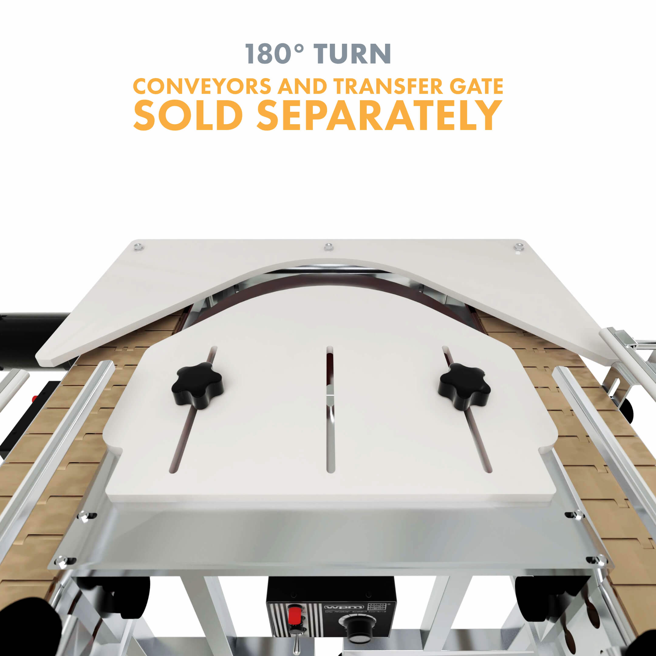Best practice is to pair this turn table with our dedicated transfer gate system, designed for optimal product guidance and alignment through turns.