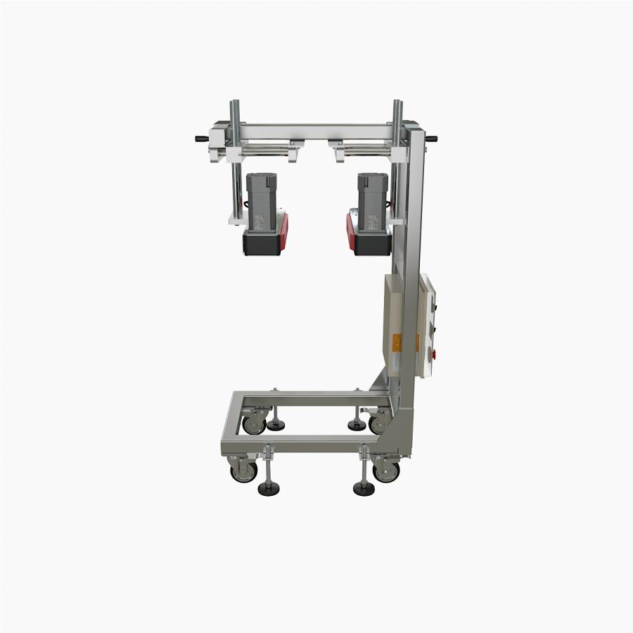 spacing. It grips containers from both sides using independently adjustable