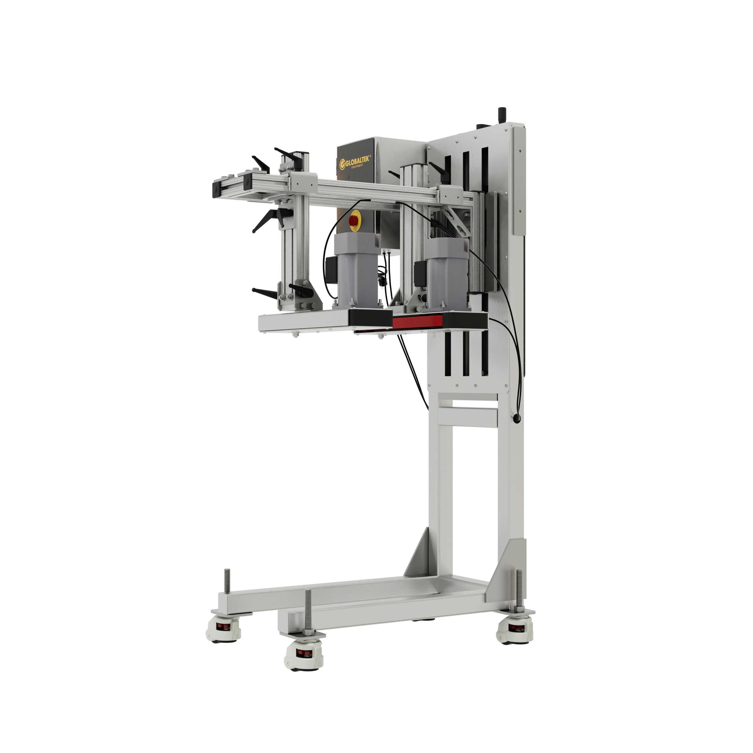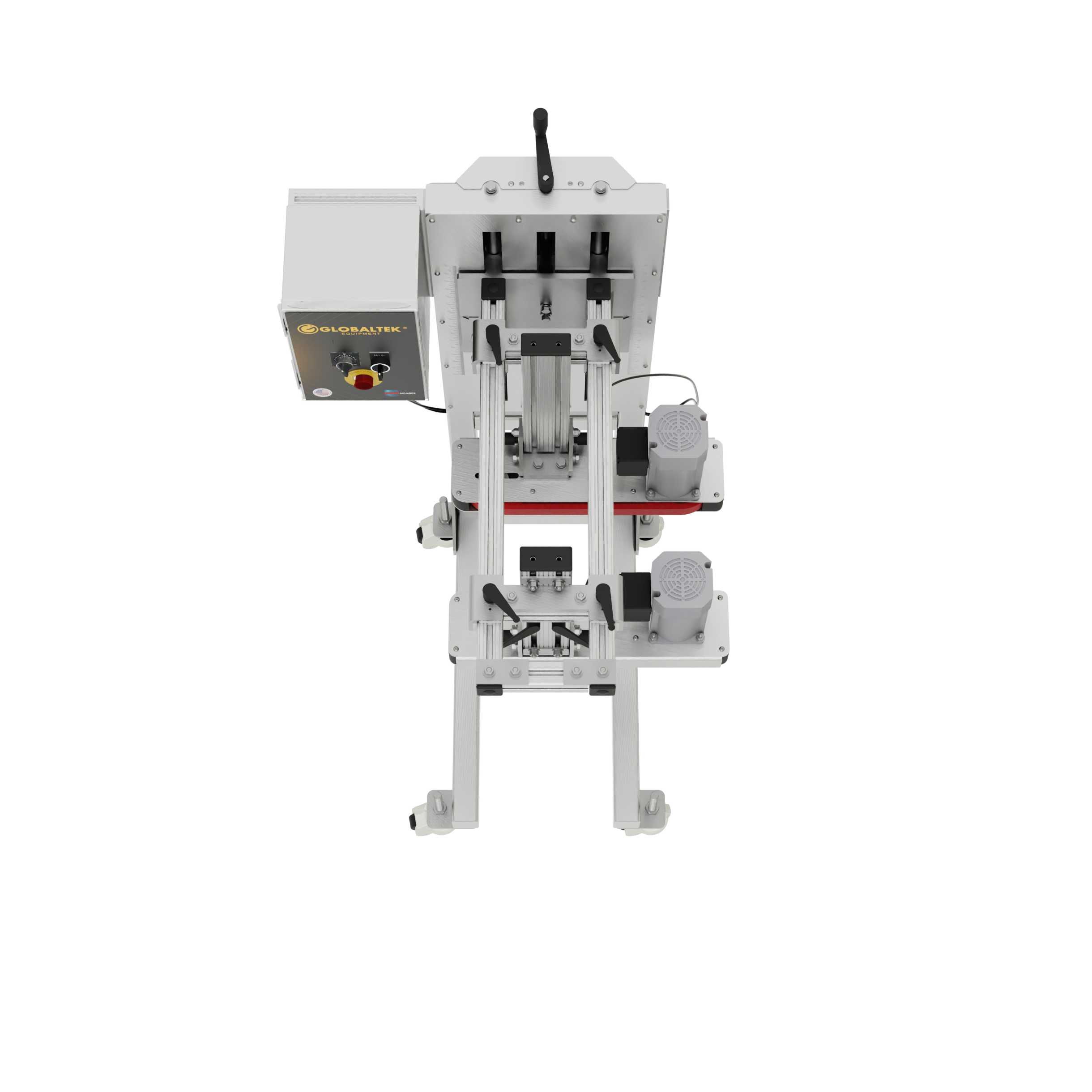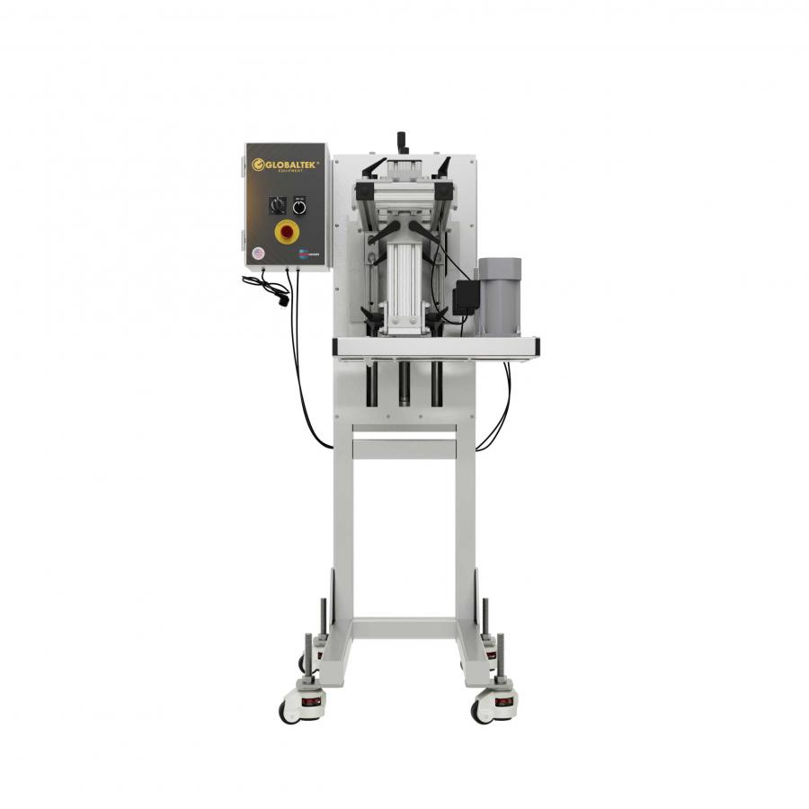 With independently adjustable, tool-less gripper belts, it accommodates containers up to 8" in diameter and 13" in height. Its compact C-frame design enables seamless integration over existing conveyor lines, making it ideal for space-constrained production areas.