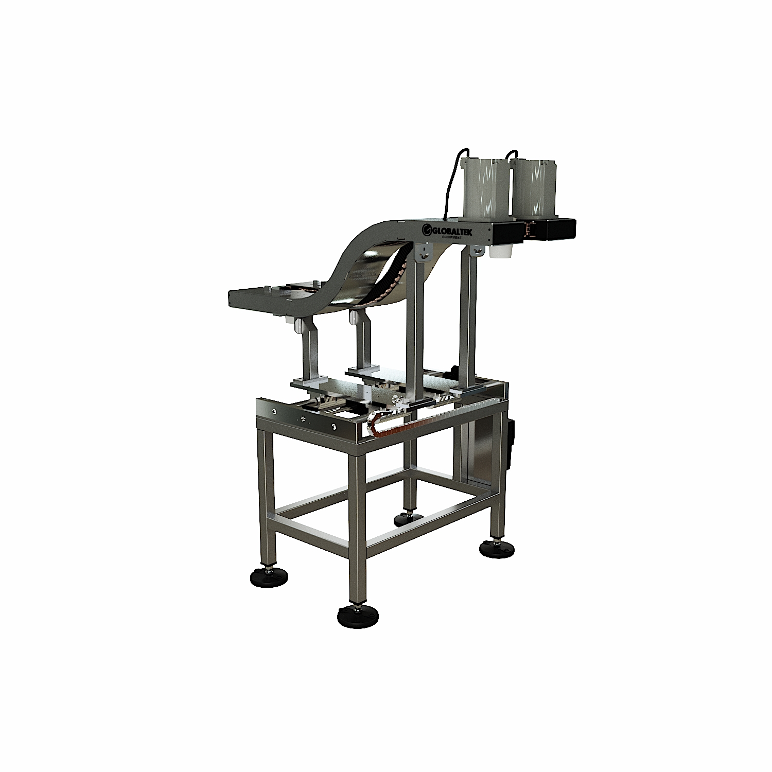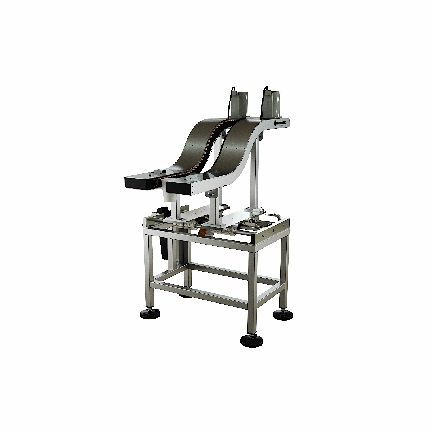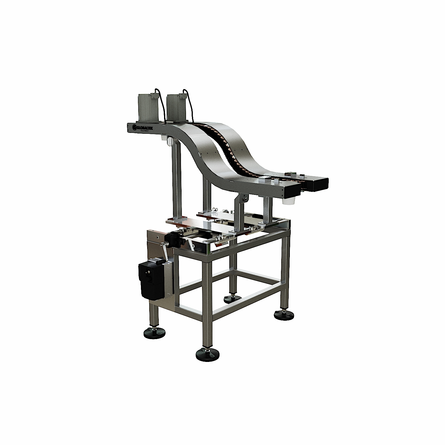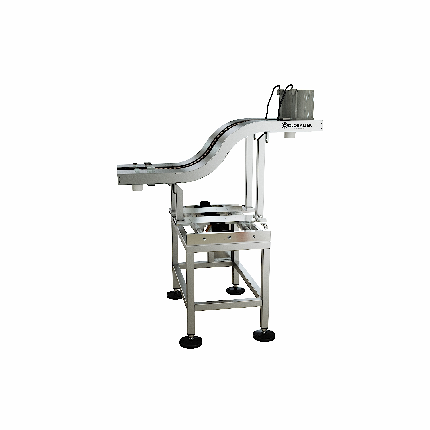 Available in “S” or “C” configurations, S-style conveyors are used for basic elevation changes while keeping the product in the same orientation, whereas C-style conveyors are used when an elevation change is required along with a 180-degree product flip. They accommodate products of various sizes and shapes, including boxes, totes, cans, plastic containers, and bottles.