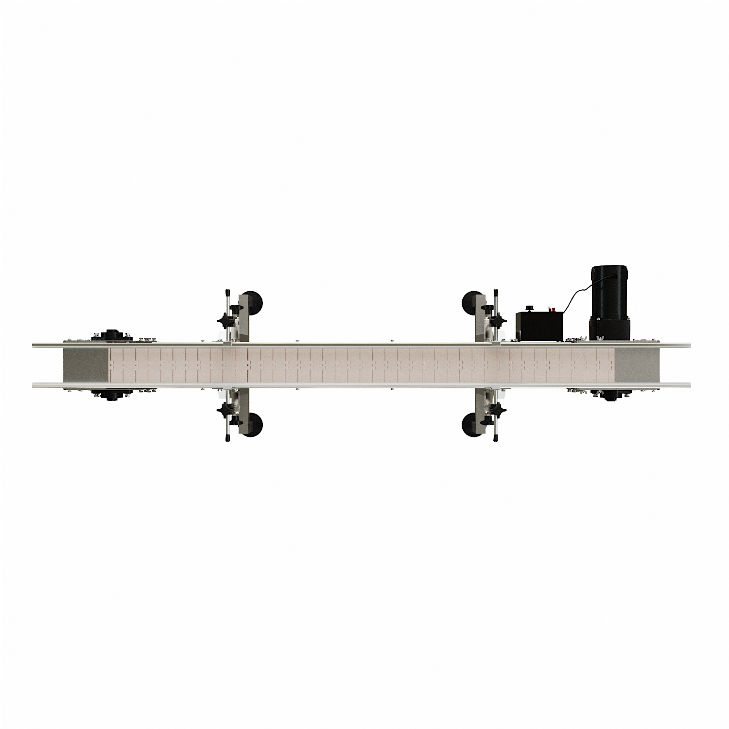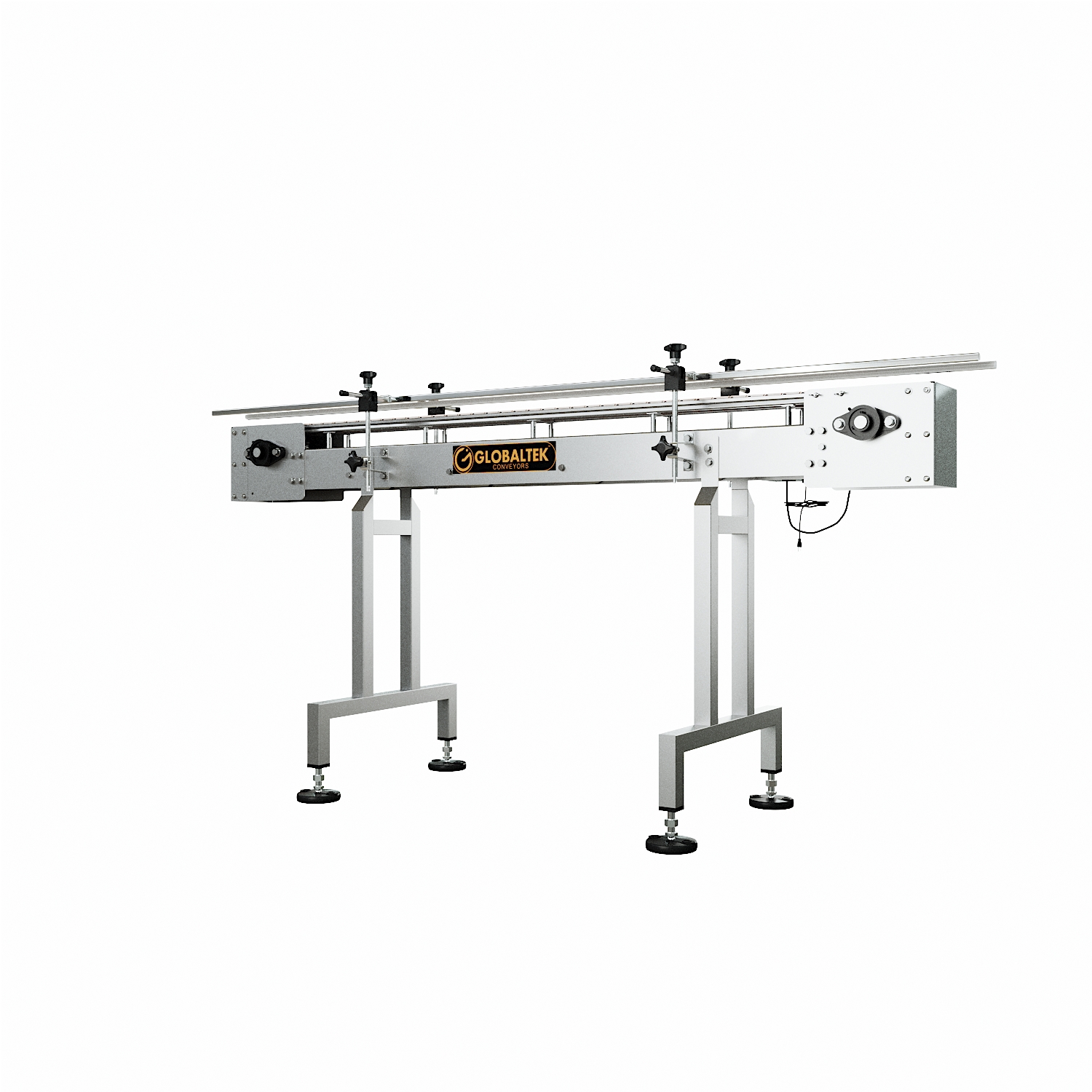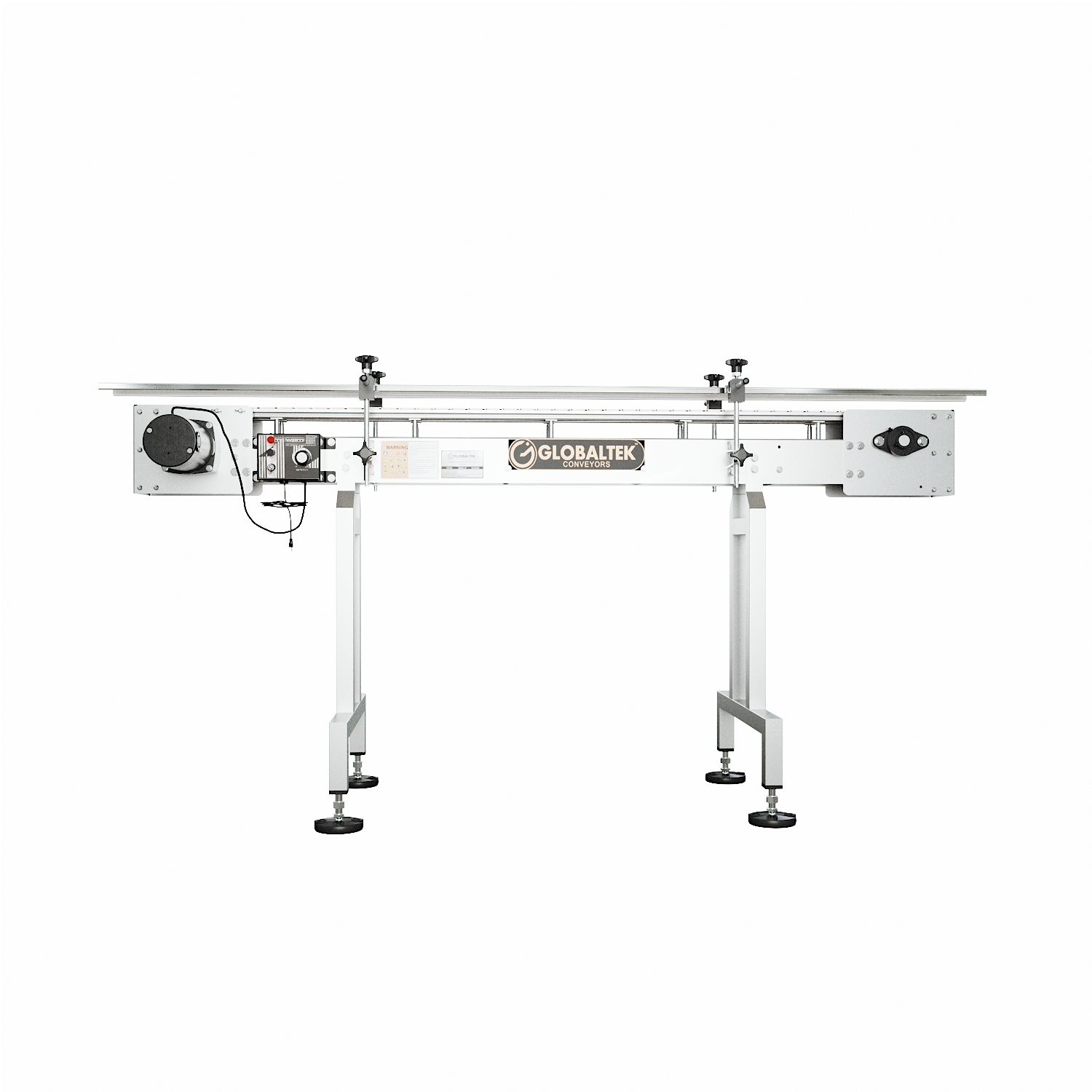 The GlobalTek® Raised Bed Sanitary Conveyor is intended to minimize chances of bacteria growth due to spilled product on conveying line. In order to achieve this, this conveyor features a raised table top plastic belt to avoid buildup of unwanted debris underneath the belt. This will allow for ease wipe down when maintenance and sanitation are required without any disassembly needed.